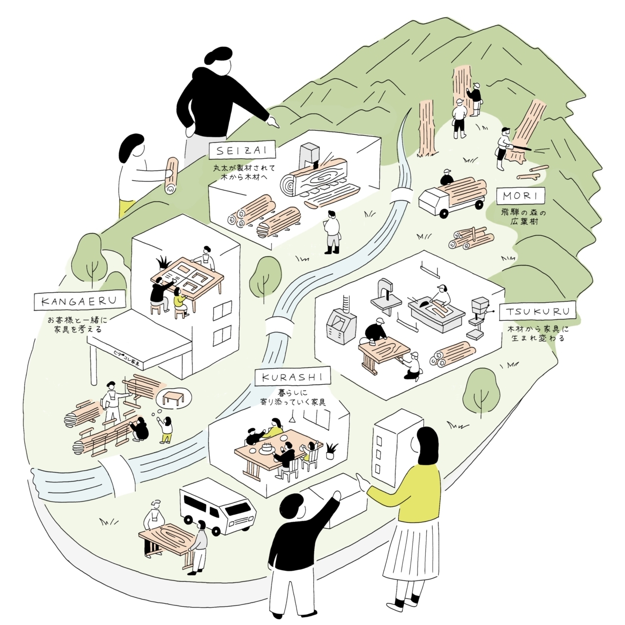 お客様にお届けしている家具は、飛騨高山にある工房からひとつひとつ生まれています。